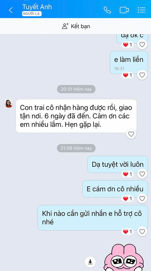 Nhân viên giàu kinh nghiệm, tư vấn rõ ràng, hỗ trợ nhanh chóng và đồng hành cùng khách hàng trong suốt quá trình gửi hàng.